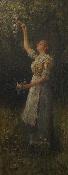 | Lot 5. Picking lilacs James Crawford Thom (1835-1898) American JC Thom '82 lower right. Oil on canvas laid to board 30 x 12 in. Unframed. An early photo shows this painting hanging in Andrew H. Green's office. ( Laid down, craquelure, varnish discoloration) $3,000 - 4,500 |